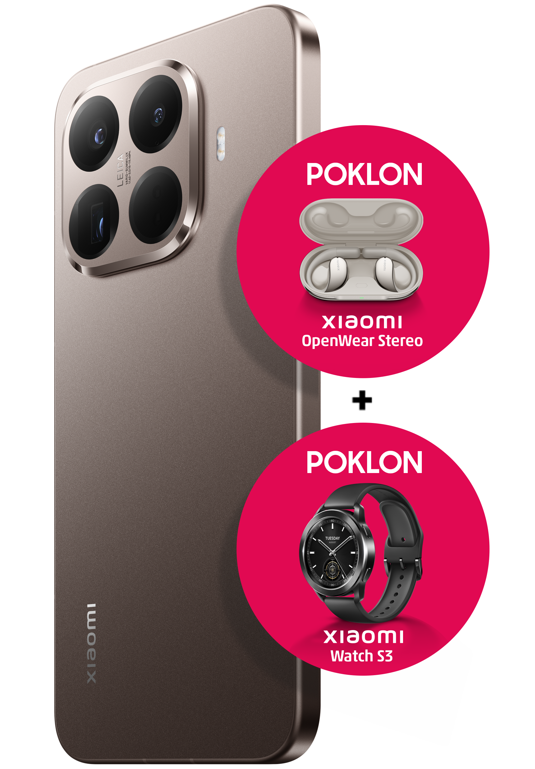 Kratki opis: Uz kupovinu Xiaomi 15T PRO 12/512 GB uređaja na poklon dobivate Xiaomi Watch S3 i Xiaomi OpenWear stereo. Promocija traje do 19.10.2025 ili do isteka zaliha poklona.