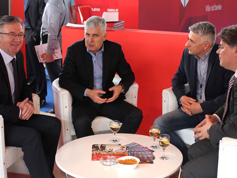 Član Predsjedništva BiH iz reda hrvatskoga naroda, predsjednik HNS-a i HDZ-a BiH dr. Dragan Čović s članovima Predsjedništva HDZ-a BiH, posjetio je danas, na Međunarodnom sajmu gospodarstva u Mostaru, izložbeni prostor HT Eroneta, gdje je razgovarao s predsjednikom Vilimom Primorcem te članovima Uprave – Goranom Kraljevićem i Tomislavom Rukom.