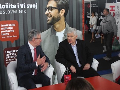 Predsjedatelj Doma naroda PS BiH i predsjednik HNS-a BiH dr. Dragan Čović i zamjenica predsjedatelja Zastupničkog doma Parlamentarne skupštine BiH Borjana Krišto, u pratnji direktorice sajma Dalfine Bošnjak, posjetili su sajamski štand HT Eroneta gdje ih je dočekao predsjednik Uprave Vilim Primorac sa suradnicima.