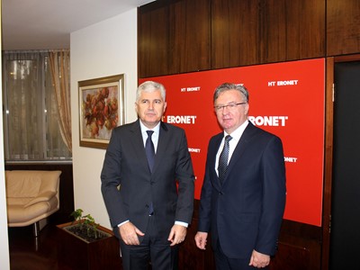 Predsjednik Uprave HT ERONET-a Vilim Primorac zahvalio je predsjedniku Čoviću na posjetu te naglasio kako je situacija u ovoj tvrtki danas bitno drukčija od one od prije dvije godine, kada je tvrtka bila opterećena aferama, padom prihoda, negativnim rezultatom poslovanja.