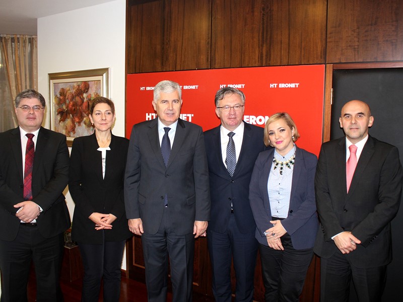 Predsjedatelj Predsjedništva BiH dr. Dragan Čović, u pratnji savjetnice dr. sc. Sanje Bazine Crnokić, posjetio je HT ERONET gdje je razgovarao s predsjednikom i članovima Uprave – Vilimom Primorcem, Gordanom Bilić, Tomislavom Rukom i Goranom Kraljevićem.