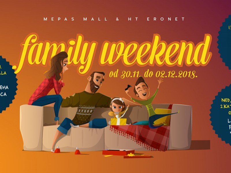Najljepši dan je zasigurno onaj koji provedemo s obitelji. Obiteljsko druženje treba njegovati, zato su Mepas Mall i HT ERONET za vas pripremili Family Weekend, najzabavniji obiteljski vikend u godini! Očekuje vas zabava za cijelu obitelj i idealna prigoda za vesela druženja, odličnu zabavu i puno osmijeha.