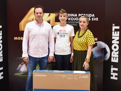 Prvu nagradu – 40“ Samsung smart TV, Mateju su uručili rukovoditeljica Korporativnih komunikacija HT Eroneta Misijana Brkić-Milinković i voditelj Marketinga Mepas Malla Josip Jurilj.