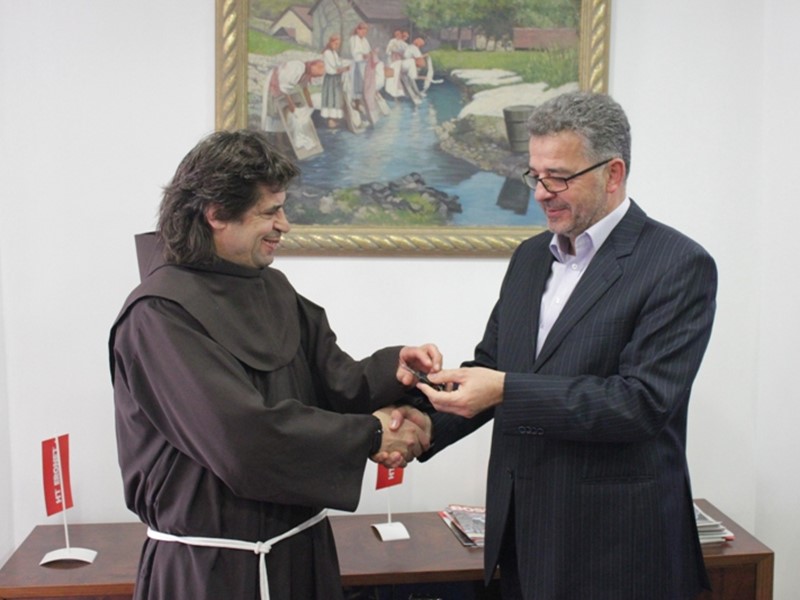 Vršitelj dužnosti predsjednika Uprave HT Eroneta Stipe Prlić uručio je danas ključeve golfa fra Stipanu Šariću župniku župe sv. Marka u Klobuku.