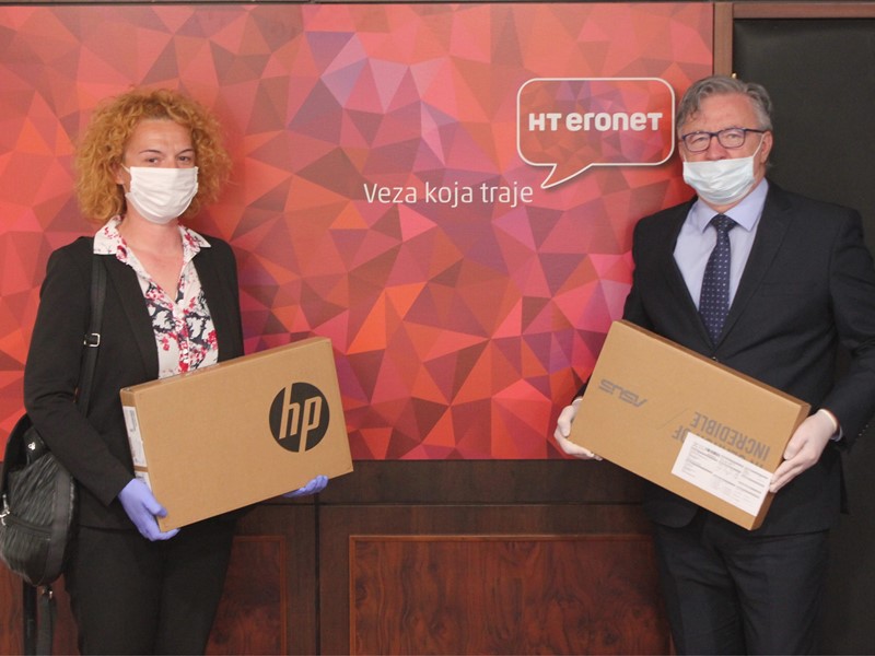 Predsjednik Uprave HT ERONET-a Vilim Primorac uručio je ravnateljici Osnovne škole za djecu s posebnim potrebama iz Mostara Maji Mustapić vrijednu donaciju – osam notebook računala za potrebe ove ustanove.
