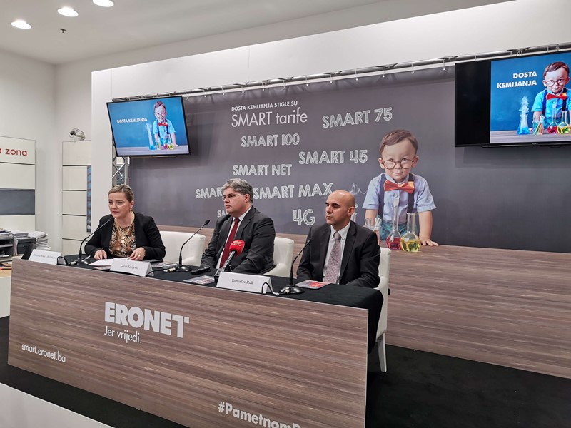 HT ERONET danas je na konferenciji za novinare u Mostaru predstavio komercijalne i tehničke aspekte 4G mreže. Tom prigodom promovirane su i nove SMART tarife.