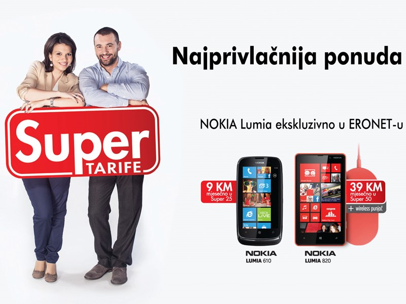 Nokia Lumia 610 dostupna je uz tarifu Super 25 s mjesečnom ratom u iznosu od svega 9 KM, dok je uređaj Nokia Lumia 820 dostupna uz tarifu Super 50 s mjesečnom ratom od 39 KM.