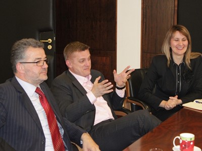 Ministar Hadžić je čestitao na nedavnom imenovanju predsjednika Uprave te zaželio uspjeh u radu. Ministar je istaknuo da ovo ministarstvo ima jako širok spektar djelovanja te da želi unaprijediti dosadašnji način rada. Naglasio je kako stavlja ovo ministarstvo na raspolaganje te pozvao Upravu HT Eroneta da da svoje prijedloge vezano za rješavanje problema koji se odnose na telekomunikacije kroz moguća formiranja radnih skupina. U svezi sa Zakonom o javnim nabavkama, ministar je kazao kako je u planu promjena navedenog zakona koja bi prije svega osigurala konkurentnost poduzeća u većinskom državnom vlasništvu.