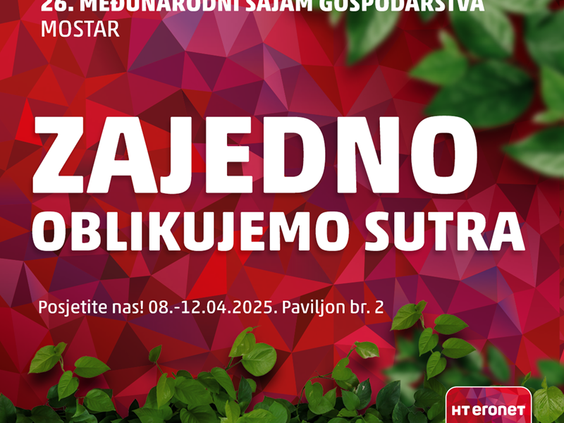 I ove se godine HT Eronet bogatim programom predstavlja na 26. Međunarodnom sajmu gospodarstva u Mostaru i to pod sloganom „Zajedno oblikujemo sutra“.