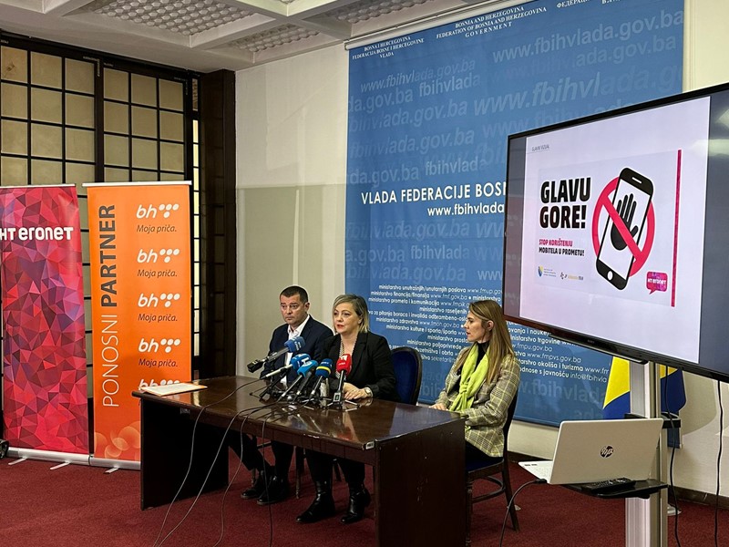 Uslijed zabrinjavajućih statističkih podataka o sigurnosti prometa na cestama, velikog broja žrtava i teško ozlijeđenih osoba prethodnih godina, Federalno ministarstvo prometa i komunikacija najavljuje pokretanje druge medijske kampanje pod nazivom "Glavu gore! Stop korištenju mobitela u prometu!". To je ujedno bio povod današnje konferencije za medije u zgradi Vlade Federacije Bosne i Hercegovine u Sarajevu.