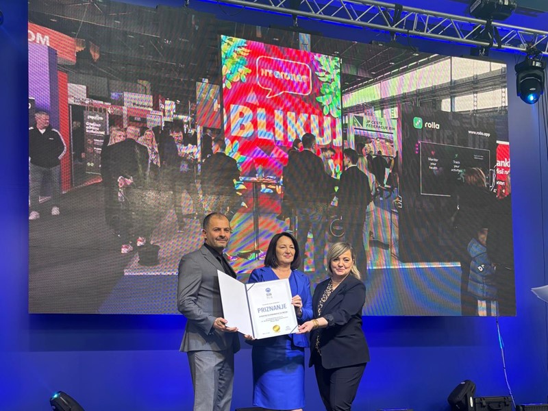 Na svečanosti na glavnoj sajamskoj pozornici priznanje je predstavnicima HT Eroneta - direktoru Sektora za marketing Denisu Zupcu i rukovoditeljici Korporativnih komunikacija Misijani Brkić Milinković - uručila direktorica Sajma Dalfina Bošnjak.