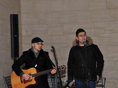 Uvertiru u prekrasnu prosinačku večer napravili su mostarski glazbenici Ivo Jurić i Karlo Milićević, koji su, uz kuhano vino, božićnim skladbama pozdravljali prolaznike i posjetitelje.