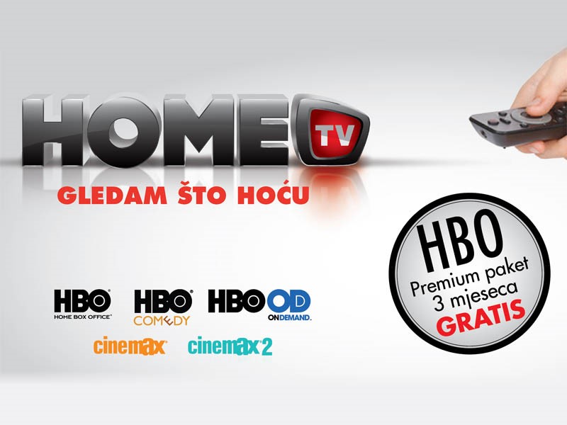 HOME.TV od danas u svojoj ponudi nudi HBO pakete. Svi postojeći korisnici ove usluge, kao i novi korisnici, koji u promotivnom razdoblju od 1.8. do 31.10.2012. potpišu ugovor za HOME.TV uslugu i jedan od HBO paketa, dobivaju tri mjeseca besplatnog uživanja uz HBO Premium paket.